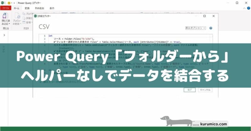 ・ヘルパークエリを使って「フォルダーから」データを結合する動作をサポートしていることはわかりました。でも基本的な動作を押さえておけば、ヘルパークエリに頼らなくてもできそうな気がするのでチャレンジしてみたいと思います。