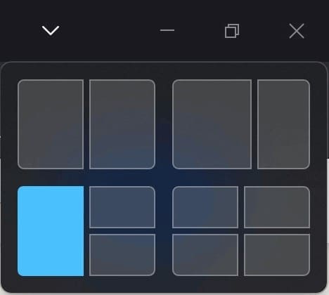 ・右側の画像で青色の部分が「スナップレイアウト」を選択しているところです。