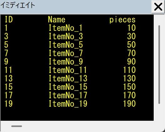 実行すると、次のイミディエイト画像のような結果となります。