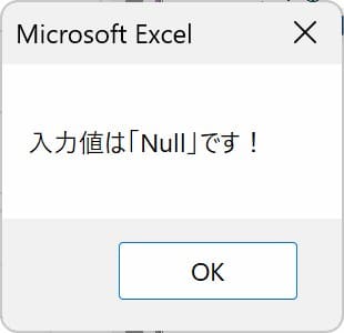 入力値が「Null」だった場合 Case Else で IsNull関数を使って判定し結果を次のように表示させています。